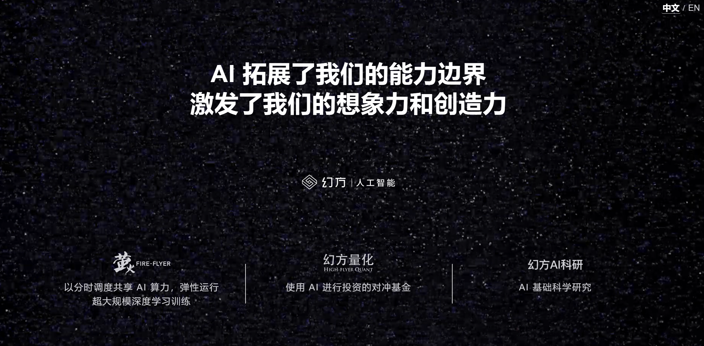 2019年:创办幻方AI公司,投资2亿元自主研发深度学习训练平台“萤火一号”,为此搭载了1100块GPU显卡 。