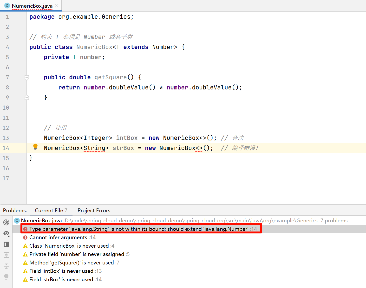 NumericBox<String> strBox = new NumericBox<>(); // 编译错误!