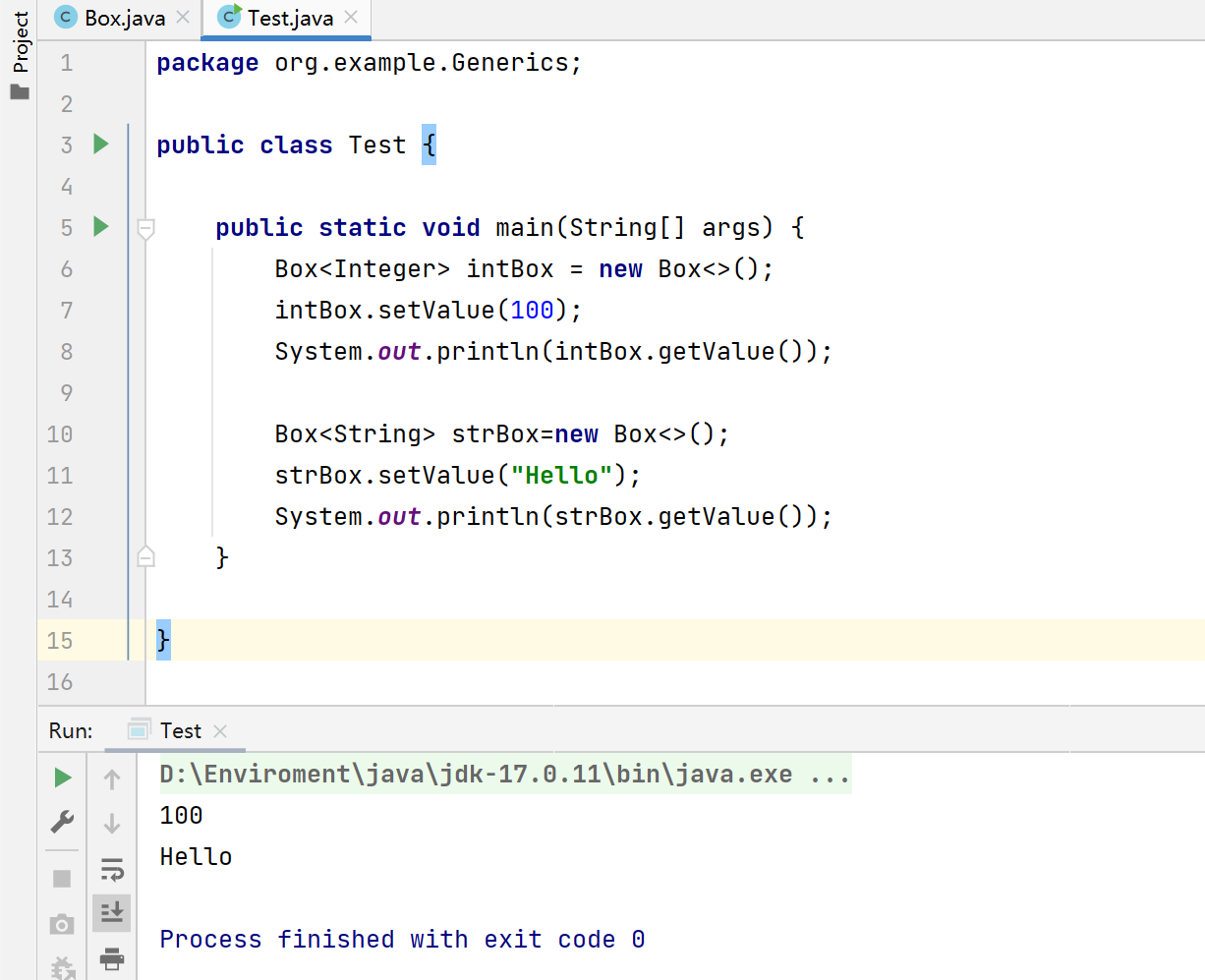 使用泛型定义类或接口时,需要在类名后面加上尖括号 < >,并在其中指定类型参数。