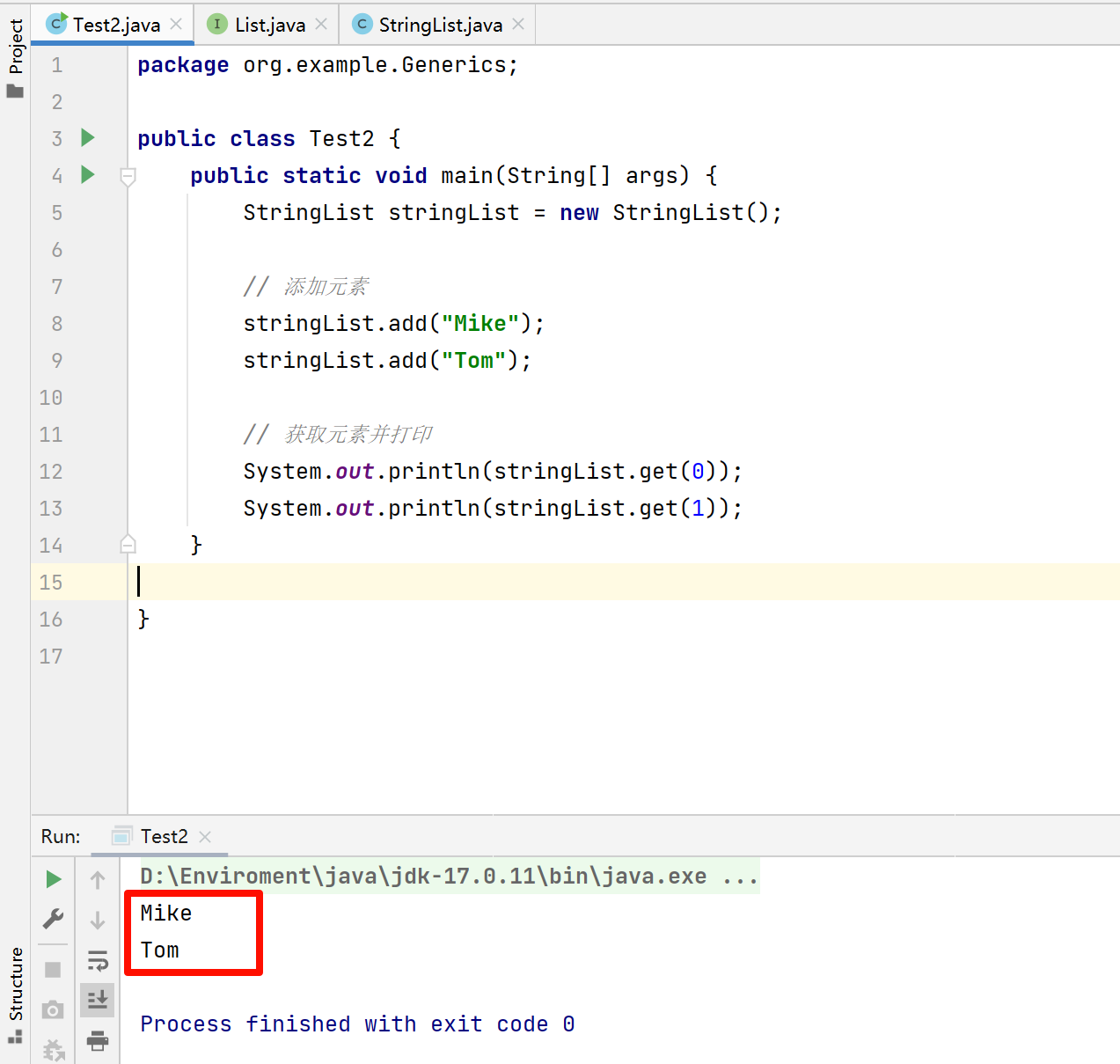 <> 表示类型参数,例如List<String> 表示一个只能存储String 类型的集合。 - 类型擦除机制: 泛型在编译时会被擦除(type erasure),即类型参数在编译后的字节码中不再保留具体类型信息。