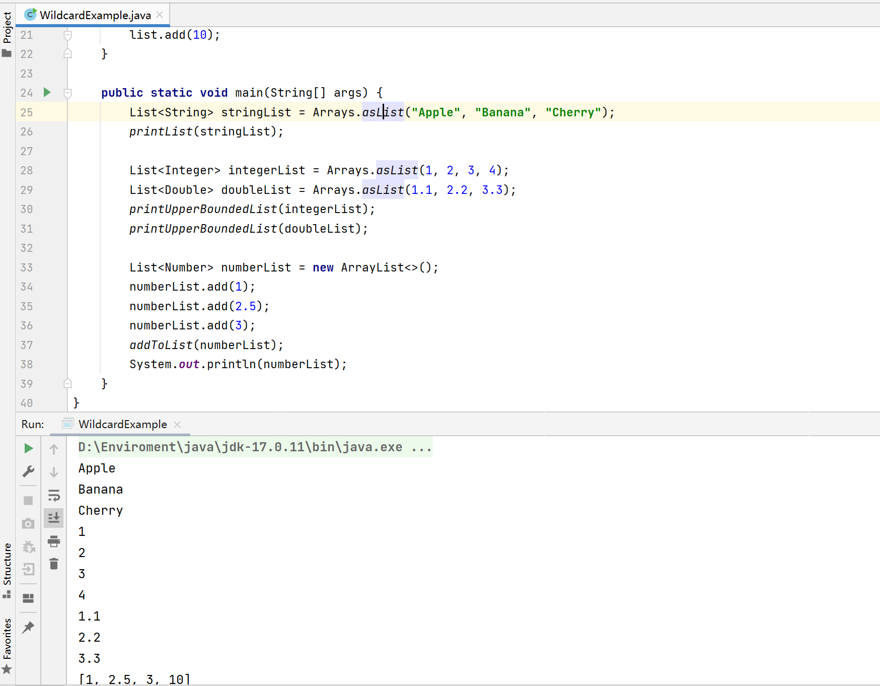 public static void printUpperBoundedList(List<? extends Number> list) {