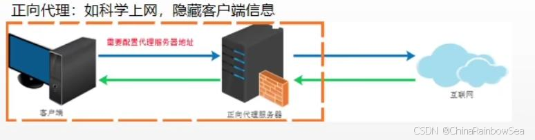 一句话:如果我们要访问 www.google.com 但是直接访问不到,则需要通过代理服 务器来访问,这种代理服务就称为正向代理