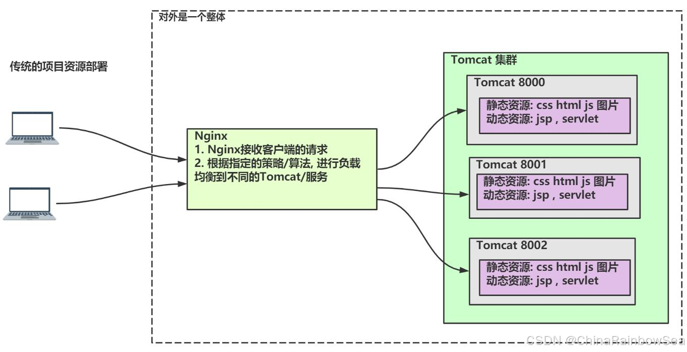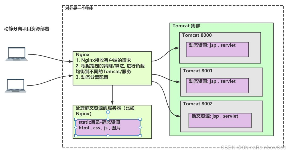 一句话:为了加快网站的解析速度,可以把动态资源和静态资源由不同的服务器来解析,降低单个服务器的压力 。