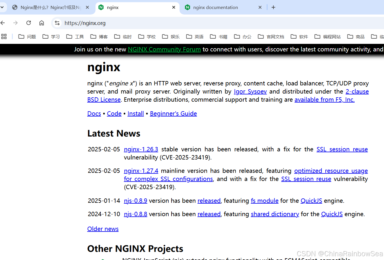 - 是什么: Nginx 是(“engine x”) 是一个高性能的 HTTP 和反向代理 Web 服务器