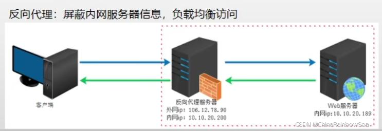 - 反向代理会屏蔽内网服务器(也就是他代理的服务)信息,并实现负载均衡访问。