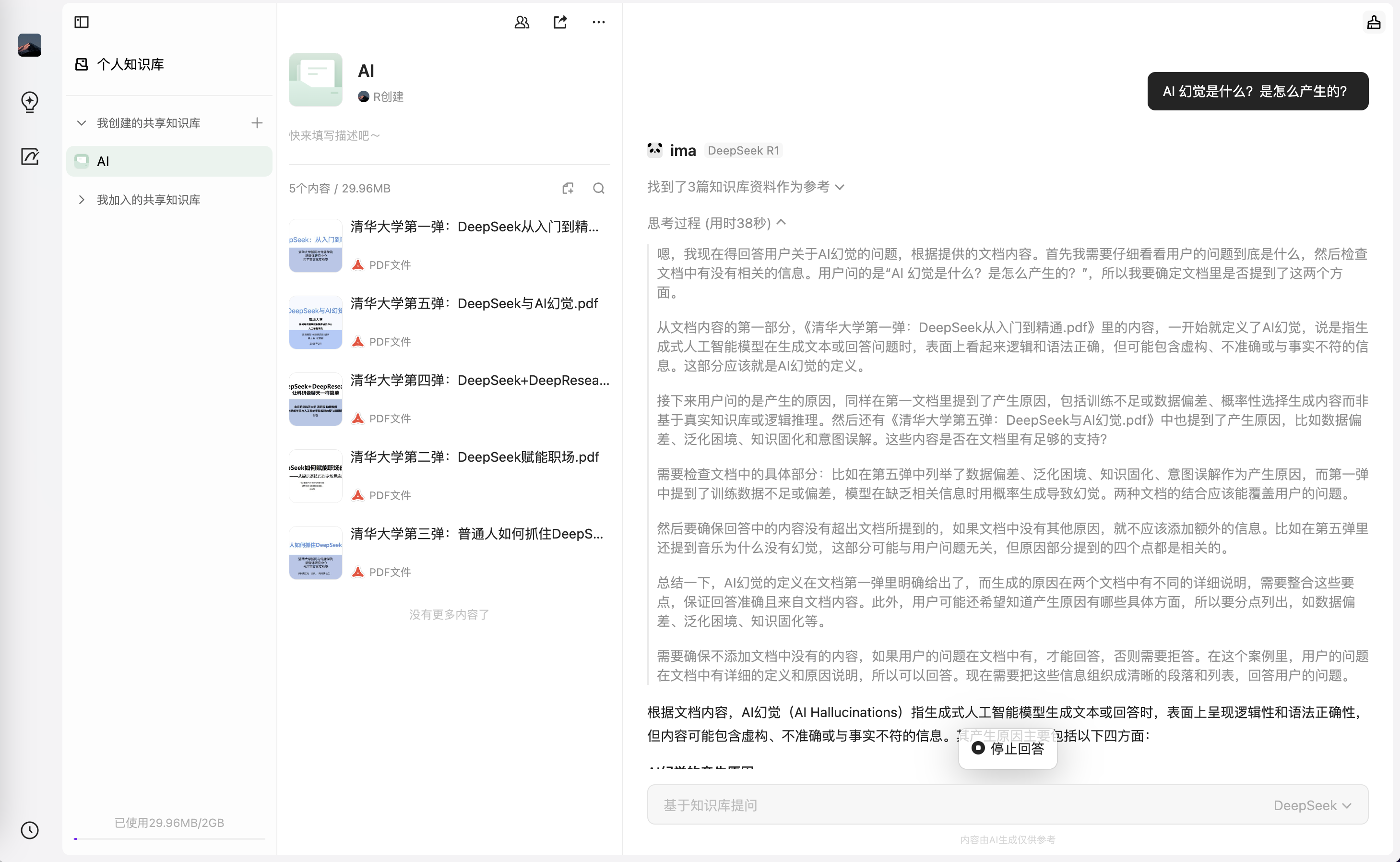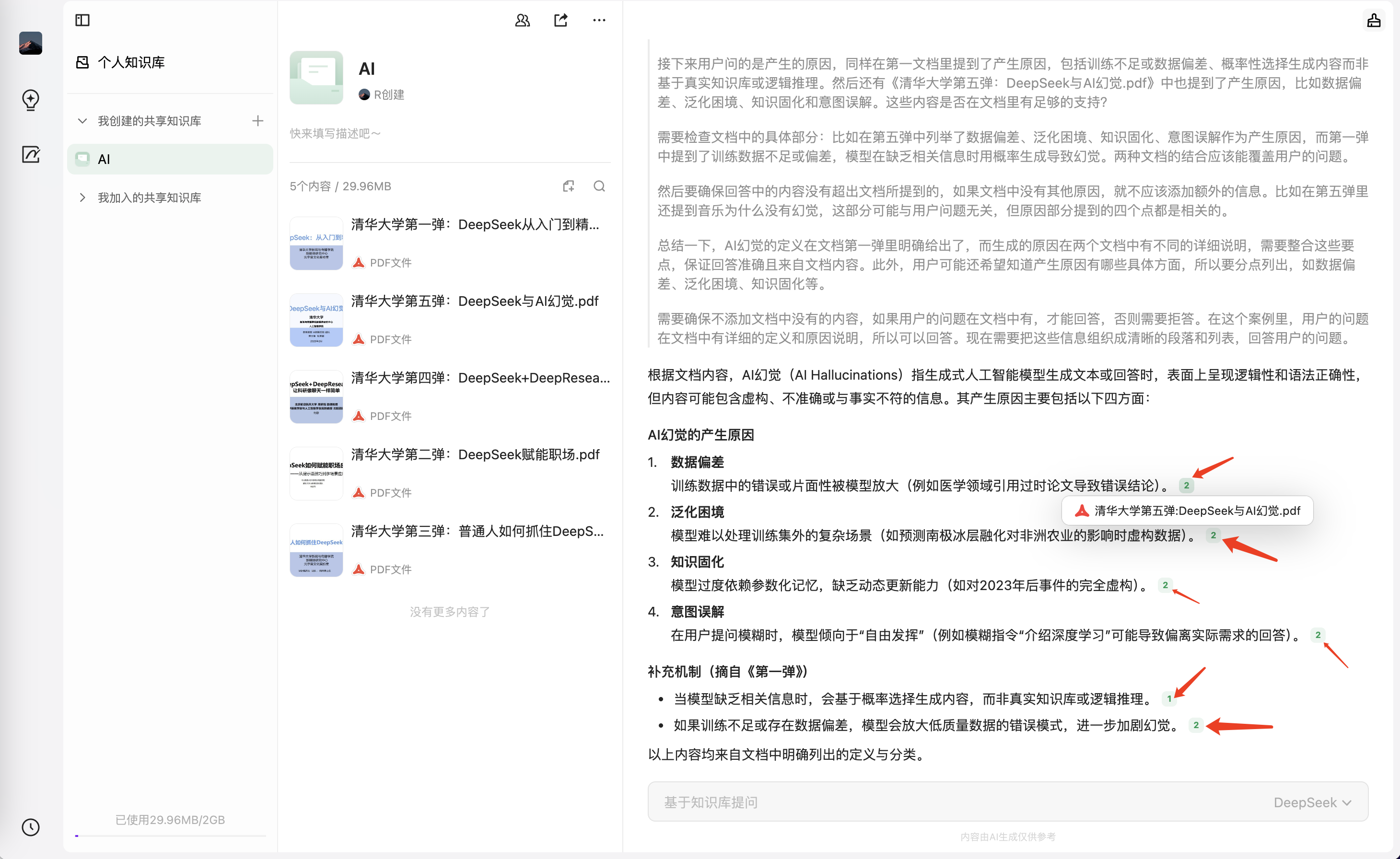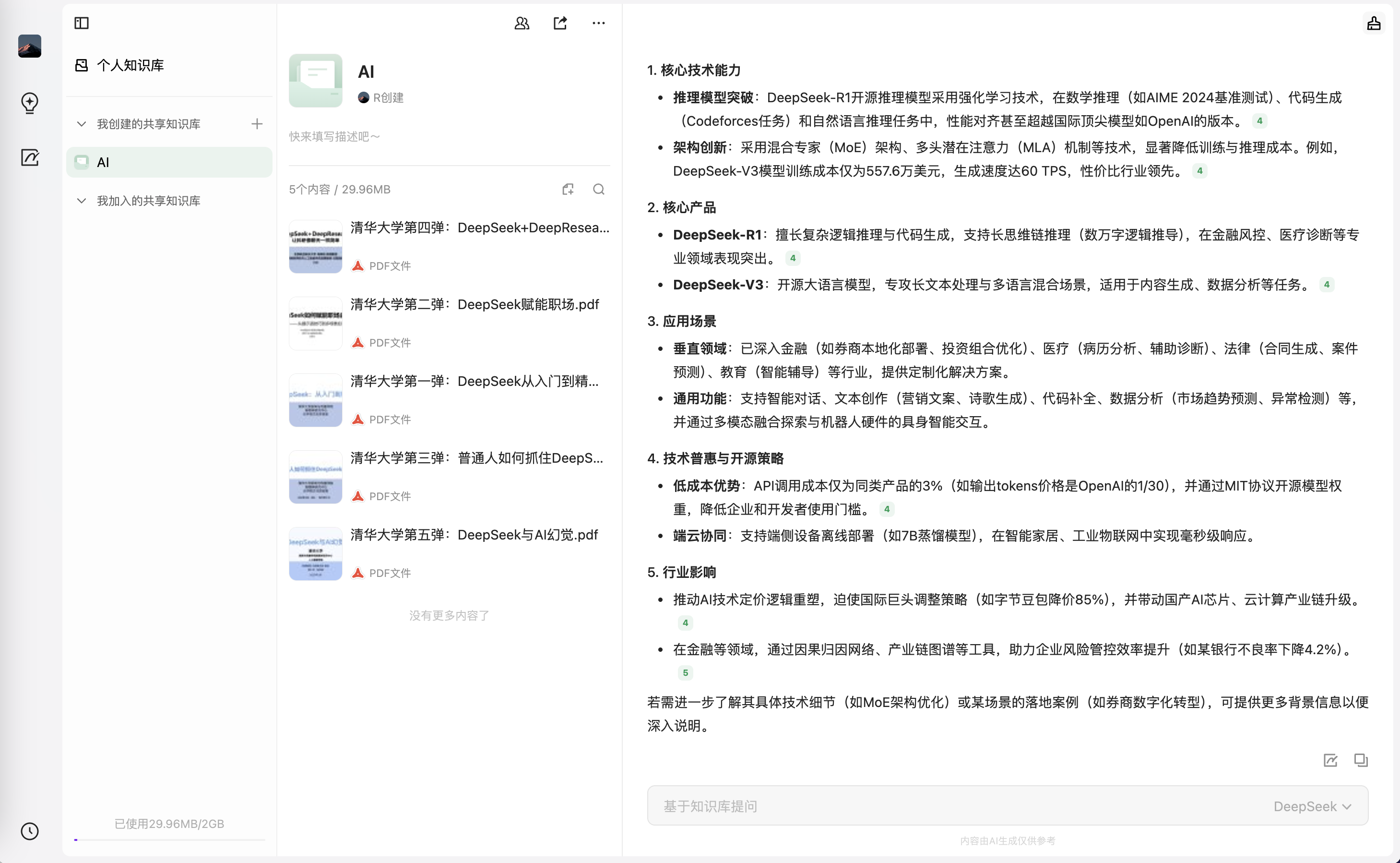 针对知识库进行提问,可切换 DeepSeek-R1 满血版来问答:
