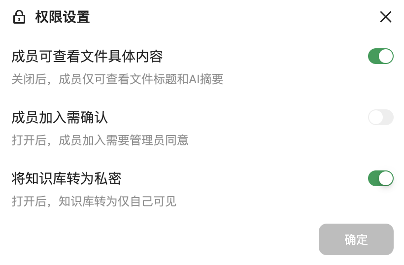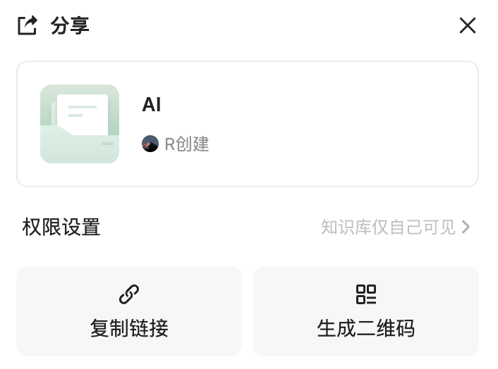 右上角可以分享知识库、进行权限设置:
