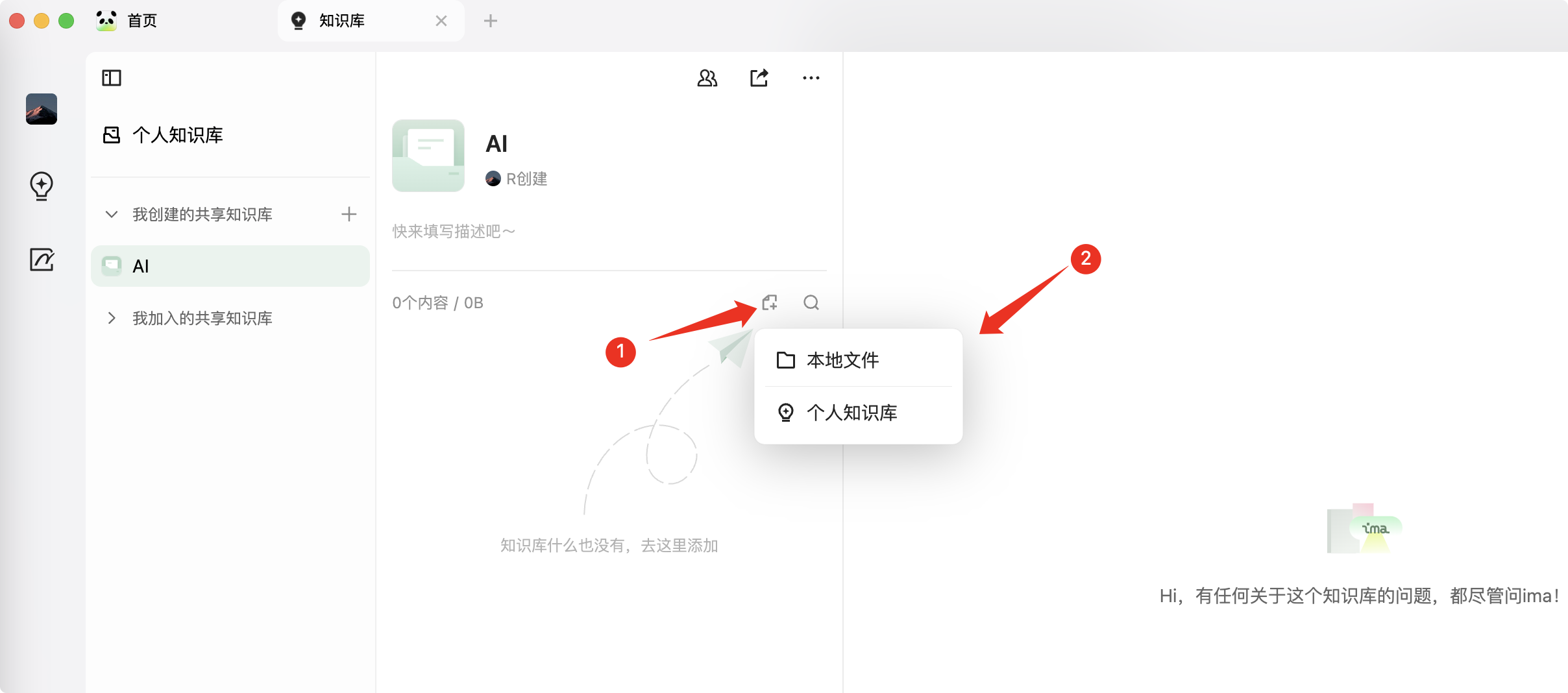 回到首页,在首页的问答可以加入个人知识库当中: