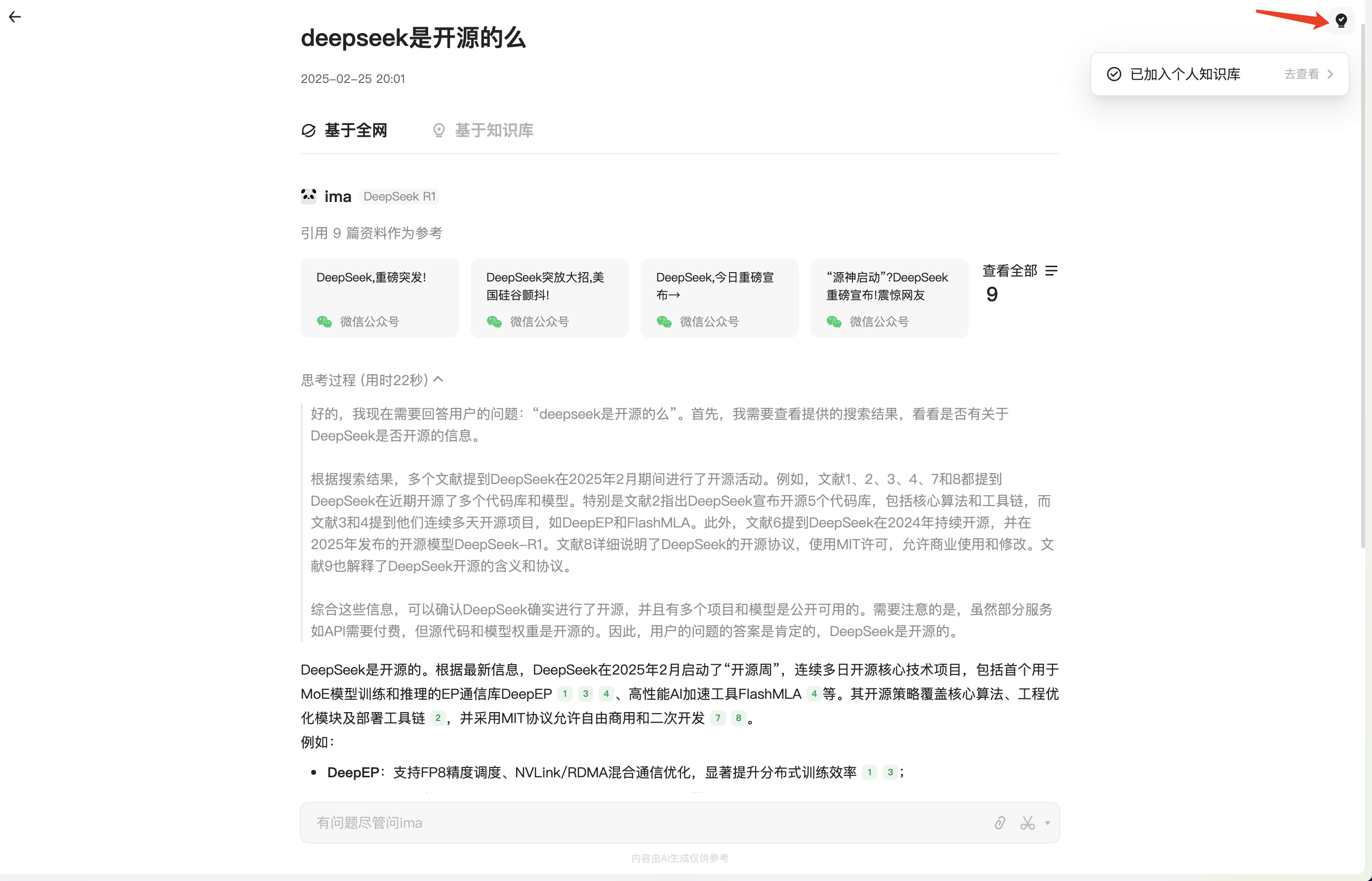 自从使用了 DeepSeek R1 和 ima,知识管理效率提升了不止一个档次!