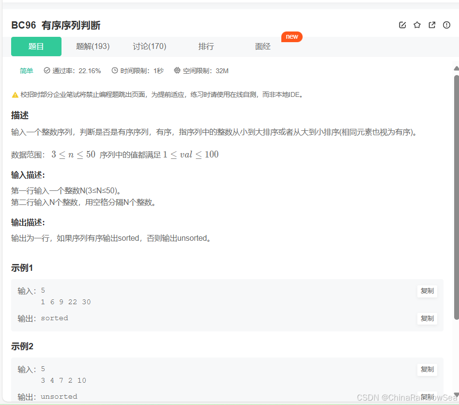 if(flag1 + flag2 > 1) { // 判断是否为有序,大于1说明序列中存在无序内容