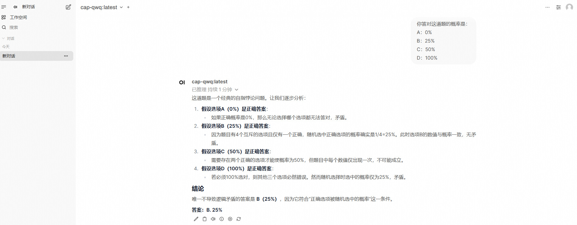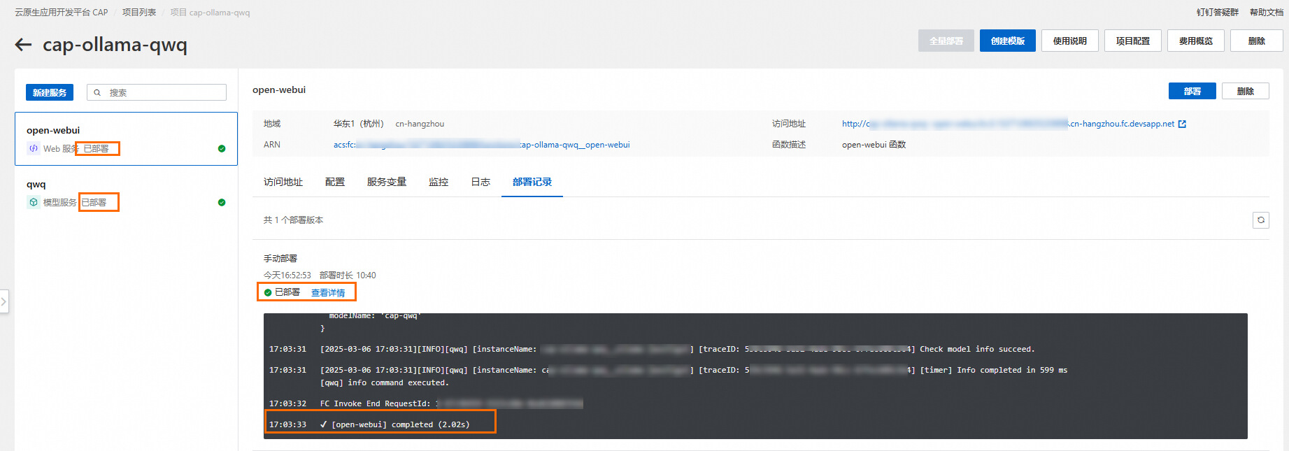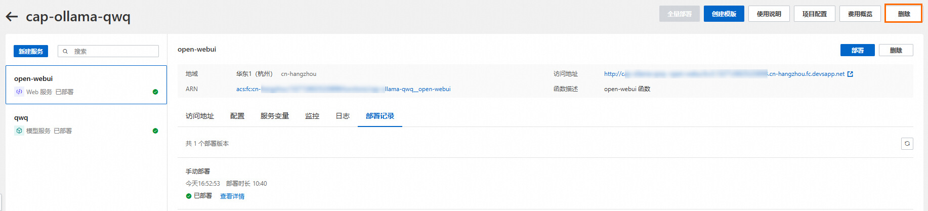 部署完毕后,点击 Open-WebUI 服务,在访问地址内找到公网访问单击访问。在OpenWebUI界面体验QwQ模型进行对话。