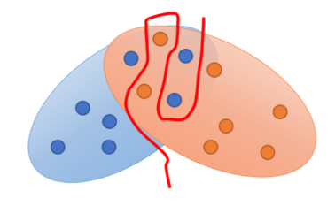 上图蓝色和橙色分别是两个分布,我们能发现分布之间确实有一些重叠,所以按理来说 JSD 不应该是 log2 。但由于我们是采样一部分样本进行训练,所以当判别器足够“强”的时候,就很有可能找到一条分界线强行将两类样本分开,从而让两类样本之间被认为完全不存在重叠。我们可以尝试传统的正则化方法(regularization等),也可以减少模型的参数让它变得弱一些。但是我们训练的目的就是要找到一个“很强”的判别器,我们在实际操作中是很难界定到底要将判别器调整到什么水平才能满足我们的需要:既不会太强,也不会太弱。还有一点就是我们之前曾经认为这个判别器应该能够测量 JSD,但它能测量 JSD 的前提就是它必须非常强,能够拟合任何数据。这就跟我们“不想让它太强”的想法有矛盾了,所以实际操作中用 regularization 等方法很难做到好的效果。