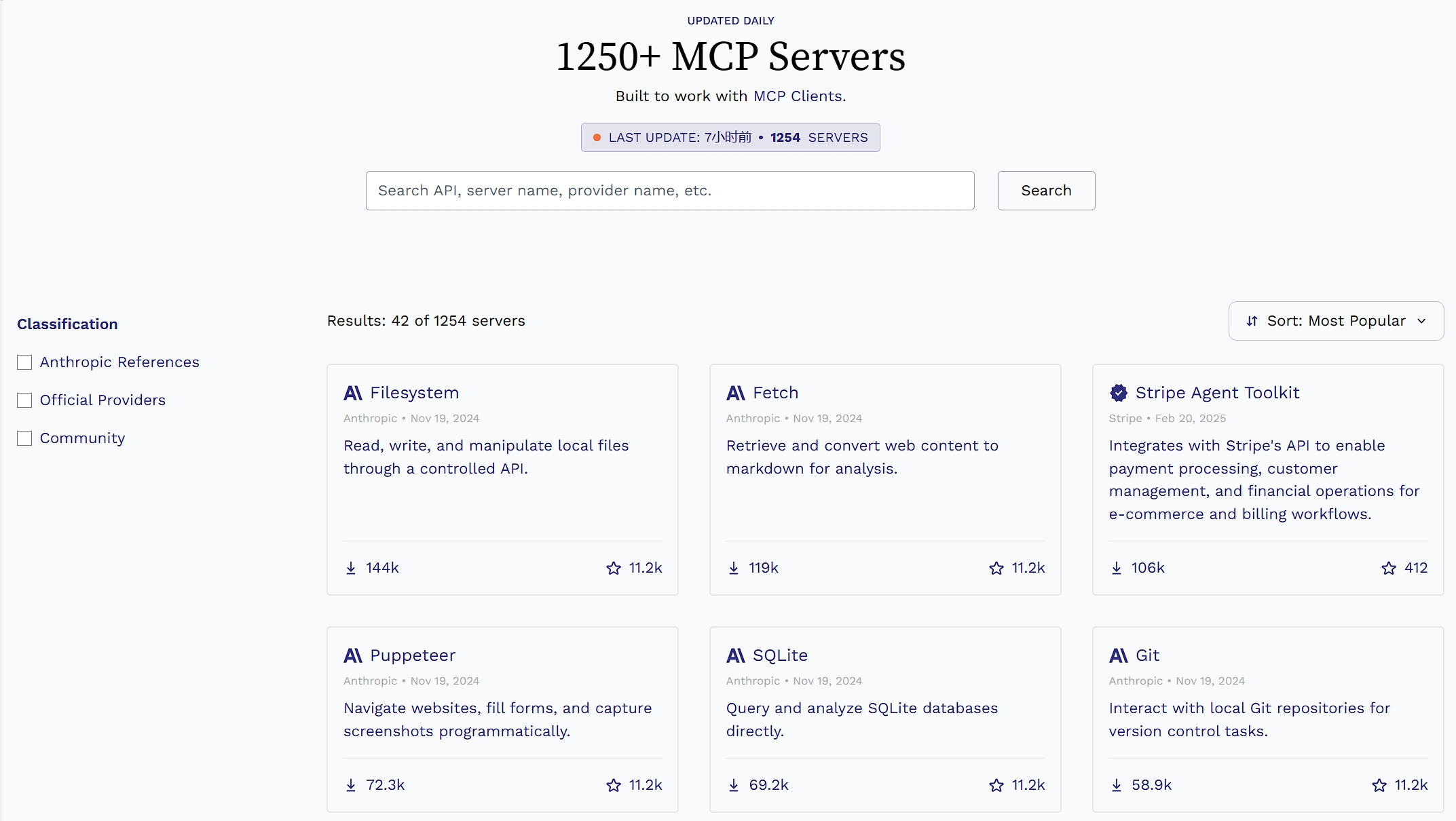 网站:通过下面的网站查找 MCP servers: