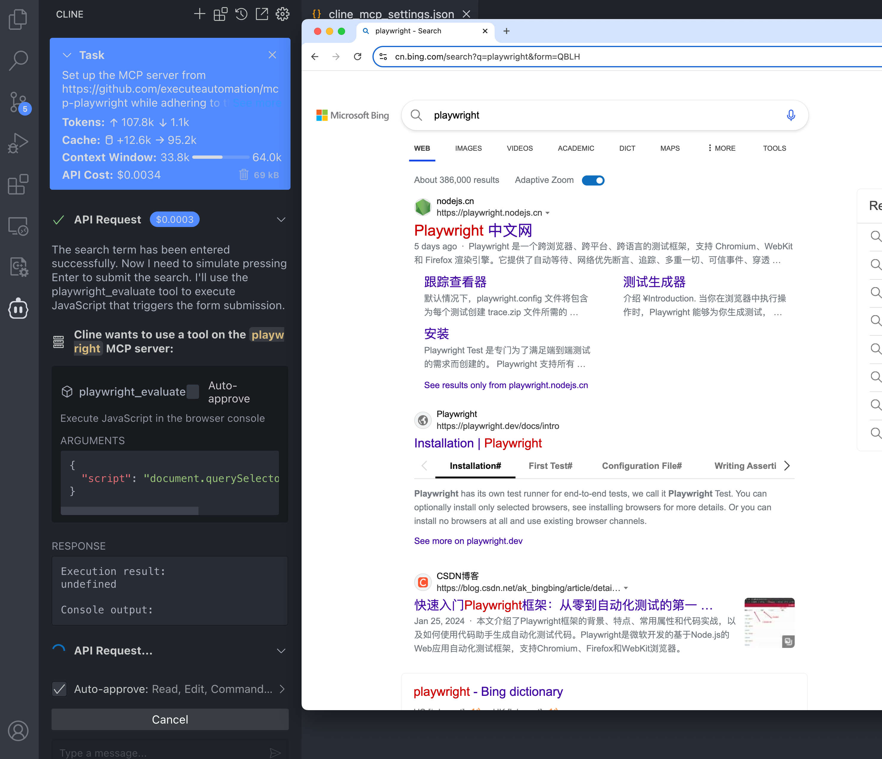 playwright MCP servers启动浏览器完成一些 UI 自动化操作。