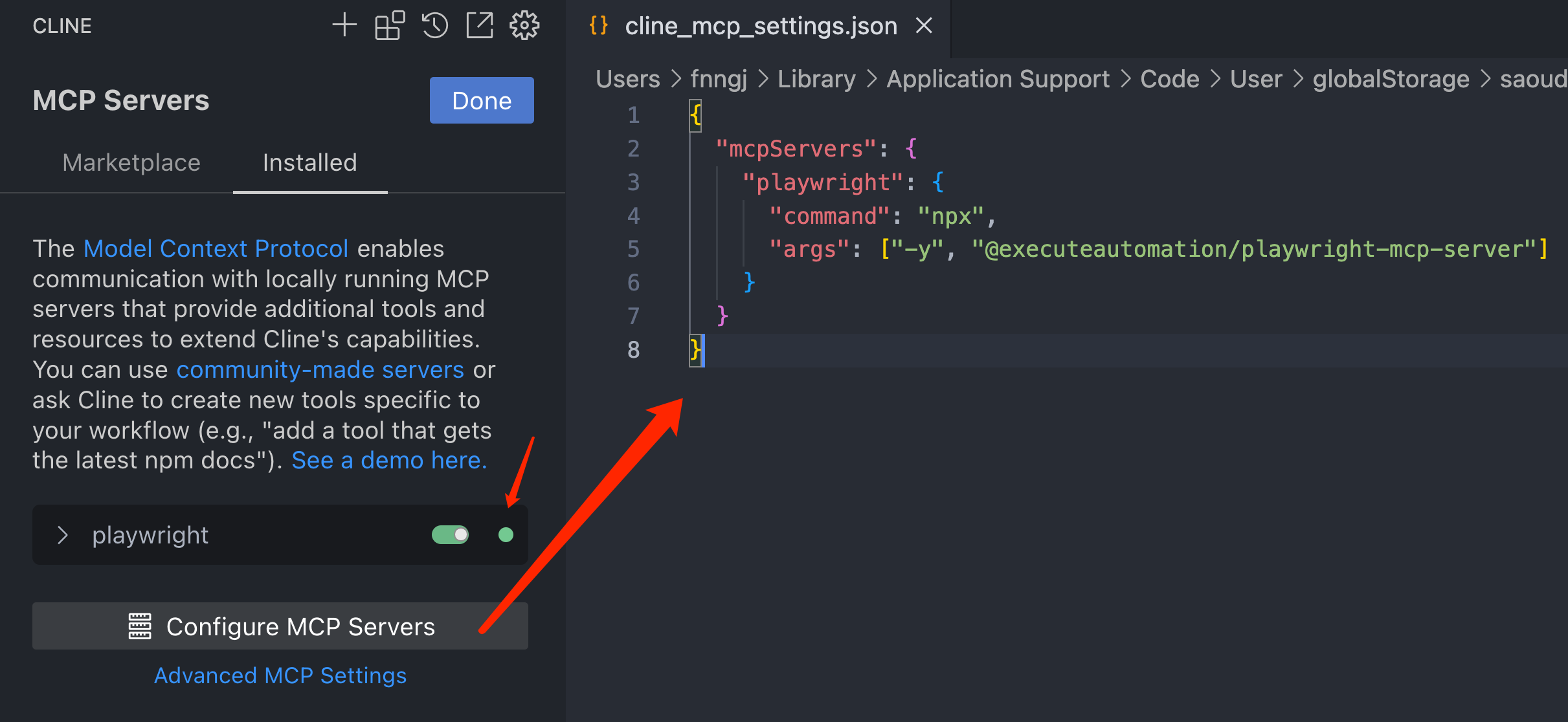 npm install -g @executeautomation/playwright-mcp-server # <--添加--