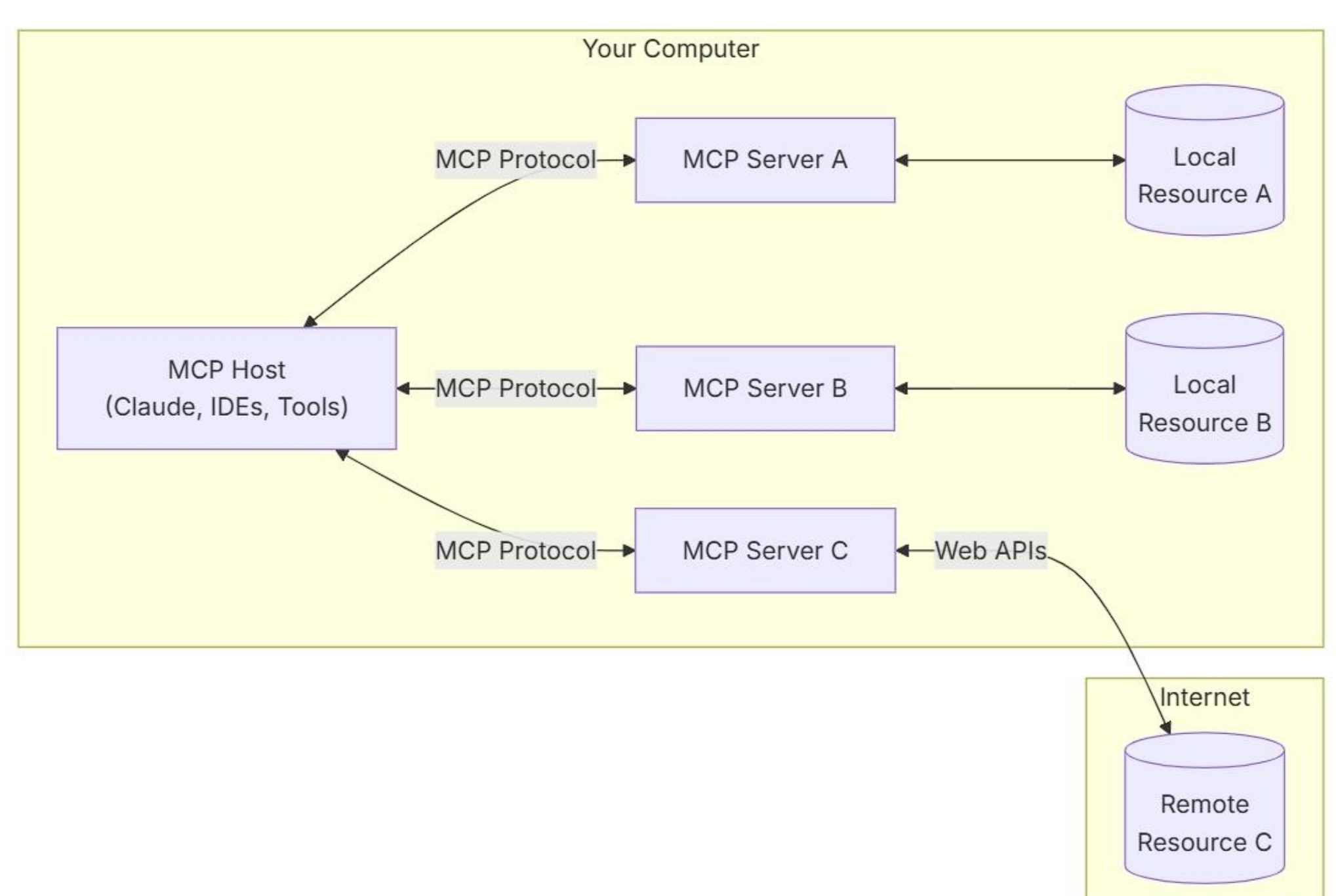 MCP Servers 作为一个轻量级的本地服务,旨在为客户端提供数据访问和功能执行的接口。