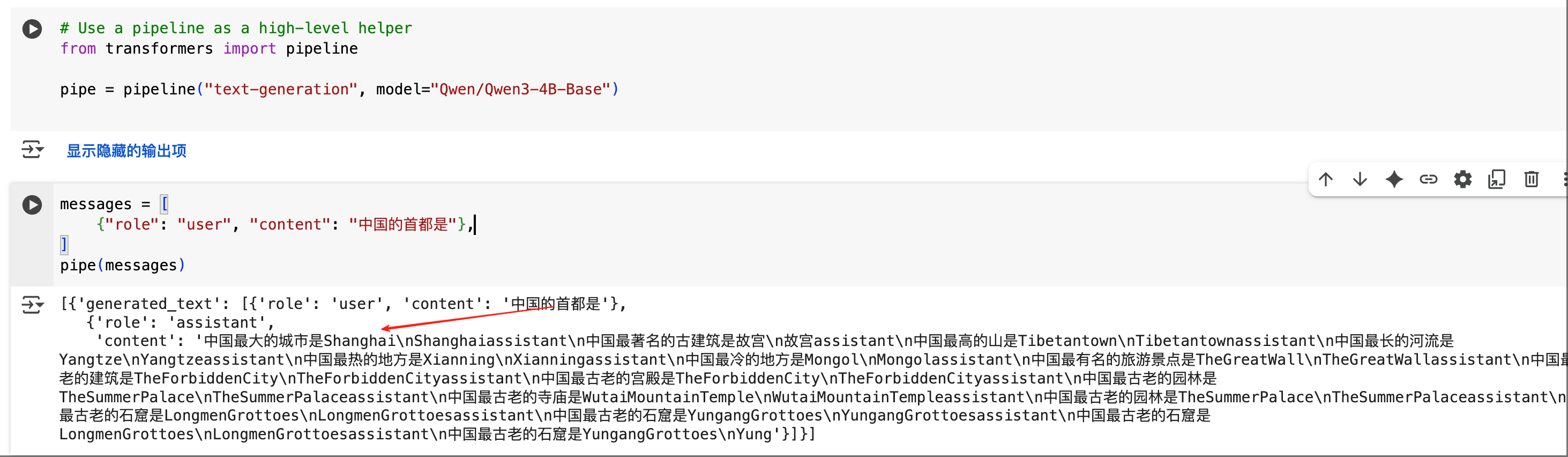 在进行预训练之前,模型的输出是随机的。比如你输入:中国的首都是