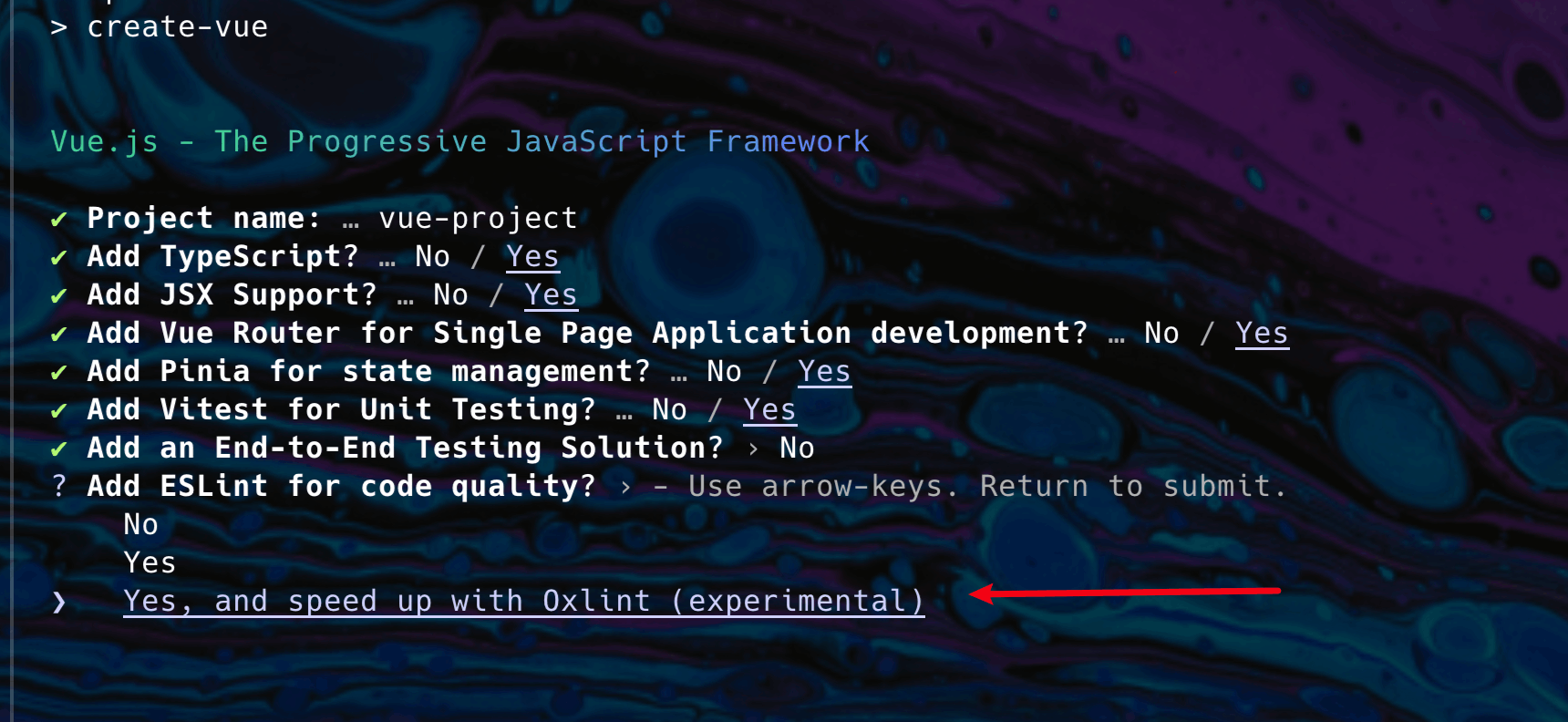- create-vue 实现性集成 Oxlint