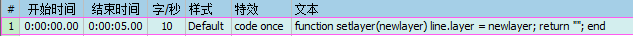 ex:这个例子中code行对每个输入行运行一次,它开启/关闭一个特效群(fxgroup),依靠输入行的说话人信息(line.actor)进行判断。