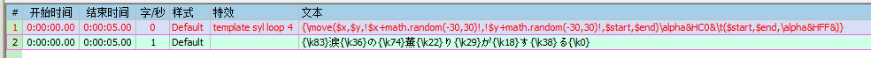 - 注意 loop 修饰的行模板和 loop 修饰的 音节/假名标记(syl/furi)模板执行顺序不同。