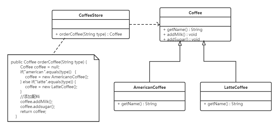 后期如果再加新品种的咖啡,我们势必要需求修改SimpleCoffeeFactory的代码,违反了开闭原则。工厂类的客户端可能有很多,比如创建美团外卖等,这样只需要修改工厂类的代码,省去其他的修改操作。
